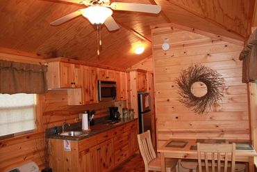 The warm, rustic style makes it easy to unwind, and climate control with heat and air conditioning, means you’ll be comfortable in this Fork Creek Cabin any time of year.